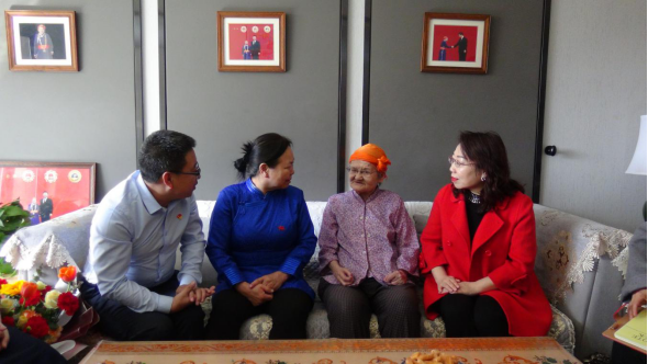 临别时候,都贵玛老妈妈站起来深情相送,并说,我只希望老师们好好工作,为我们内蒙古自治区、为乌兰察布培养更多人才,不辜负党,不辜负人民群众。虽然我老了,我也在很努力地资助、参加各类活动,让我们共同努力吧。