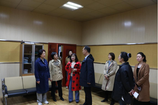 4月1日下午,王汉君一行在内蒙古艺术学院教务处陈春燕老师和影视戏剧学院副院长路广、播音与主持艺术系刘凤至主任的陪同下参观考察了播音与主持艺术专业的模拟演播室、模拟电台实训室、录音棚、专业课实训室、学生创新创业项目,并观摩了形体训练课,随后,与播音与主持艺术系领导和相关老师进行了深入座谈和交流。播音与主持艺术系刘凤至主任就该专业的发展历史、专业建设、人才培养方案的制定与修订、教学改革、实习实训等情况进行了详细介绍,相关教师对他们的课程设置、教学方法以及学生社会实践、创新创业等内容与考察组老师们进行了深入的交流。路广院长介绍了该专业的就业情况及目前在自治区乃至全国的一个社会影响力,特别介绍了他们的一些特色办学和管理的经验。