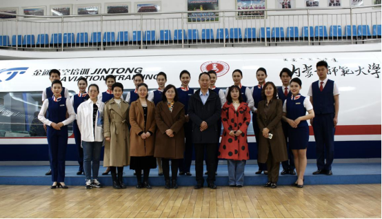 4月2日,王汉君一行又前往内蒙古师范大学盛乐校区,在旅游学院院长长安、党总支书记包长喜、副院长苏龙高娃,广慧金通集团内蒙古负责人姜易君副总经理及相关领导、老师的陪同下,参观考察了航空服务艺术与管理专业的实训场地,新型航空模拟仓、全机型飞机模展、形体训练室、化妆课以及空难模拟与急救给考察组留下了深刻的印象。随后进行了座谈,苏龙高娃围绕师资队伍建设、人才培养方案建设、课程建设、学生管理、就业与实习五个方面的校企共建,以及多年来取得的成绩和办学过程中所遇的困难、挑战等方面进行了介绍,长安院长介绍了校企合作的模式和共管办法,姜易君介绍了广慧金通的情况与校企合作院校多年来取得的成绩,并表达了希望与PP电子游戏官网进行合作的愿望。