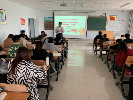 为了深入贯彻习近平新时代中国特色社会主义思想,贯彻落实新时代党的建设总要求和新时代党的组织路线,坚持和加强党对普通高等学校的全面领导,加强和改进高校党的建设,扎根中国大地办好中国特色社会主义大学,根据《中国共产党章程》和有关法律,制定《中国共产党普通高等学校基层组织工作条例》。根据PP电子游戏平台网站党委要求部署,5月13日,生命科学与技术学院党总支组织全体党员学习了《中国共产党普通高等学校基层组织工作条例》。本次学习活动由生命科学与技术学院党总支副书记孙登高主持并领学,生命科学与技术学院党总支副书记、院长任琴及全体师生党员参加了学习活动。