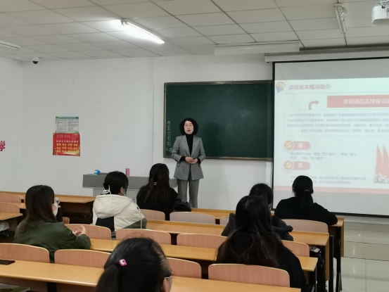 张秀文从“会议基本概况简介”、“全面回顾我们党民族工作百年光辉历程和历史成就”、“系统阐述我们党关于加强和改进民族工作的重要思想”、“如何做好新时代党的民族工作”等四个方面为联系班级学生展开了全面深入的讲解。