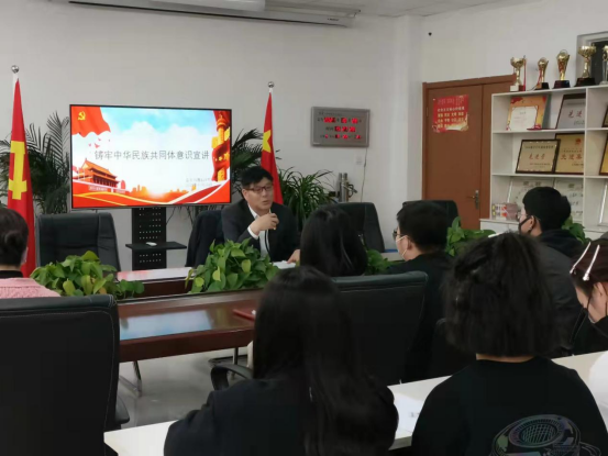 张富以“进一步加强宣传教育铸牢中华民族共同体意识”为题,从为什么要铸牢中华民族共同体意识,怎么才能铸牢中华民族共同体意识两个方面进行了讲解。
