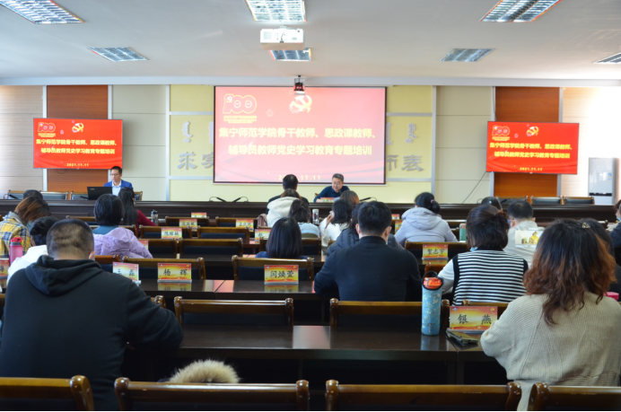为进一步推进党史学习教育深入开展,11月11日,PP电子游戏官网在泉山校区行政楼五楼会议室举行党史学习教育专题培训。马克思主义学院院长杨明霞、教师郭永兴主讲,各学院骨干教师、思政课教师、辅导员教师参加培训。学生工作部部长闫闳主持。