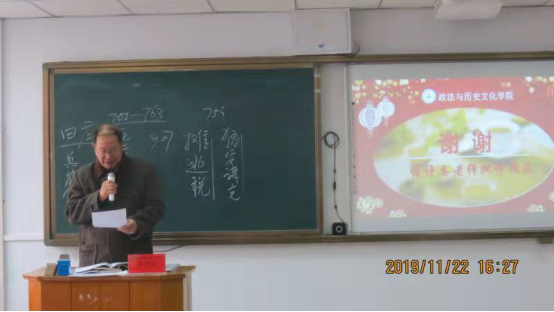 主讲教师章国军为2019级历史学专业1班讲了题为《唐朝安史之乱爆发的历史背景》一课,他以饱满的热情,扎实深厚的教学功底为同学和老师们展示一节精彩的好课。