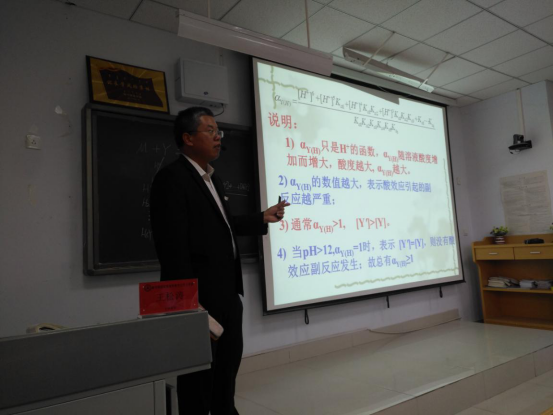 12日下午的本次主讲教师为分析化学教研室主任王松涛和物理化学教研室主任任庆云,讲课内容分别是《络合滴定中的副反应》与《热力学第二定律》;13日下午的主讲老师分别是无机化学教研室主任吴亚丽老师和教学科长李强老师,讲课内容分别是《原子结构模型》与《中和热的测定》。四位老师的教学风格各具特色,教学过程中师生密切互动,课堂氛围热烈,教学效果良好,得到评委老师的一致好评。