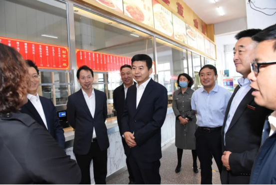 费东斌在学生食堂深入了解学校基础设施建设情况