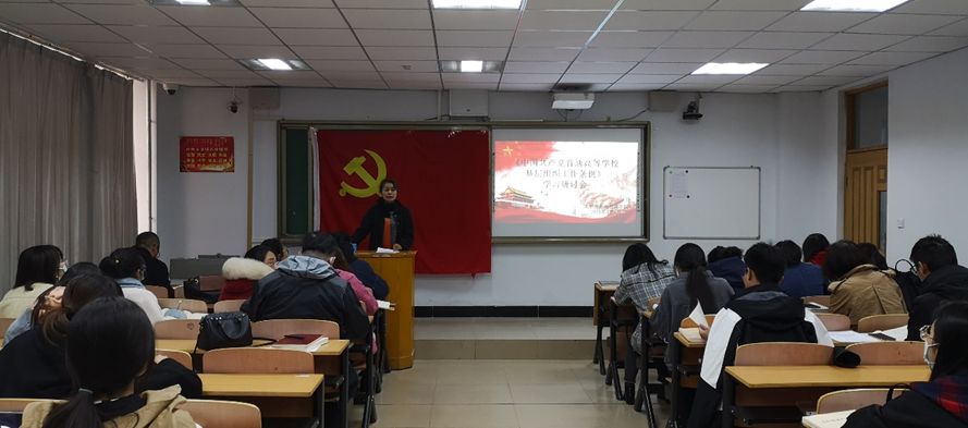 会上,张一弘传达了学校关于学习《中国共产党普通高等学校基层组织工作条例》相关文件精神,并向大家介绍了本次学习的主要内容和学习目的。文学与新闻传播学院教师党员郝青山带领全体党员学习了《中国共产党普通高等学校基层组织工作条例》的全部内容。