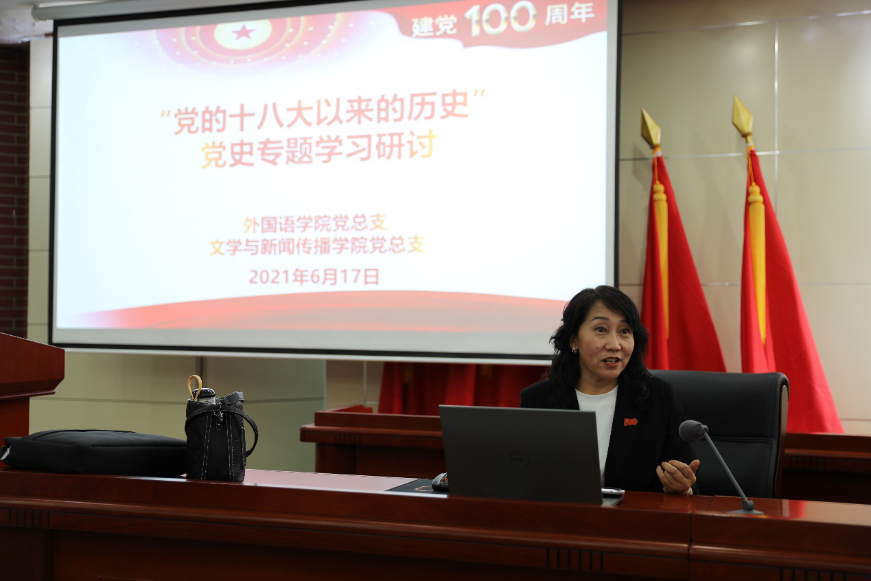 6月17日下午,PP电子游戏平台网站文学与新闻传播学院联合外国语学院在图书馆报告厅举办“党的十八大以来的历史”党史专题学习研讨会。马克思主义学院教师晓荣,文学与新闻传播学院、外国语学院的全体师生党员参加了会议,会议由文学与新闻传播学院党总支书记张一弘主持。