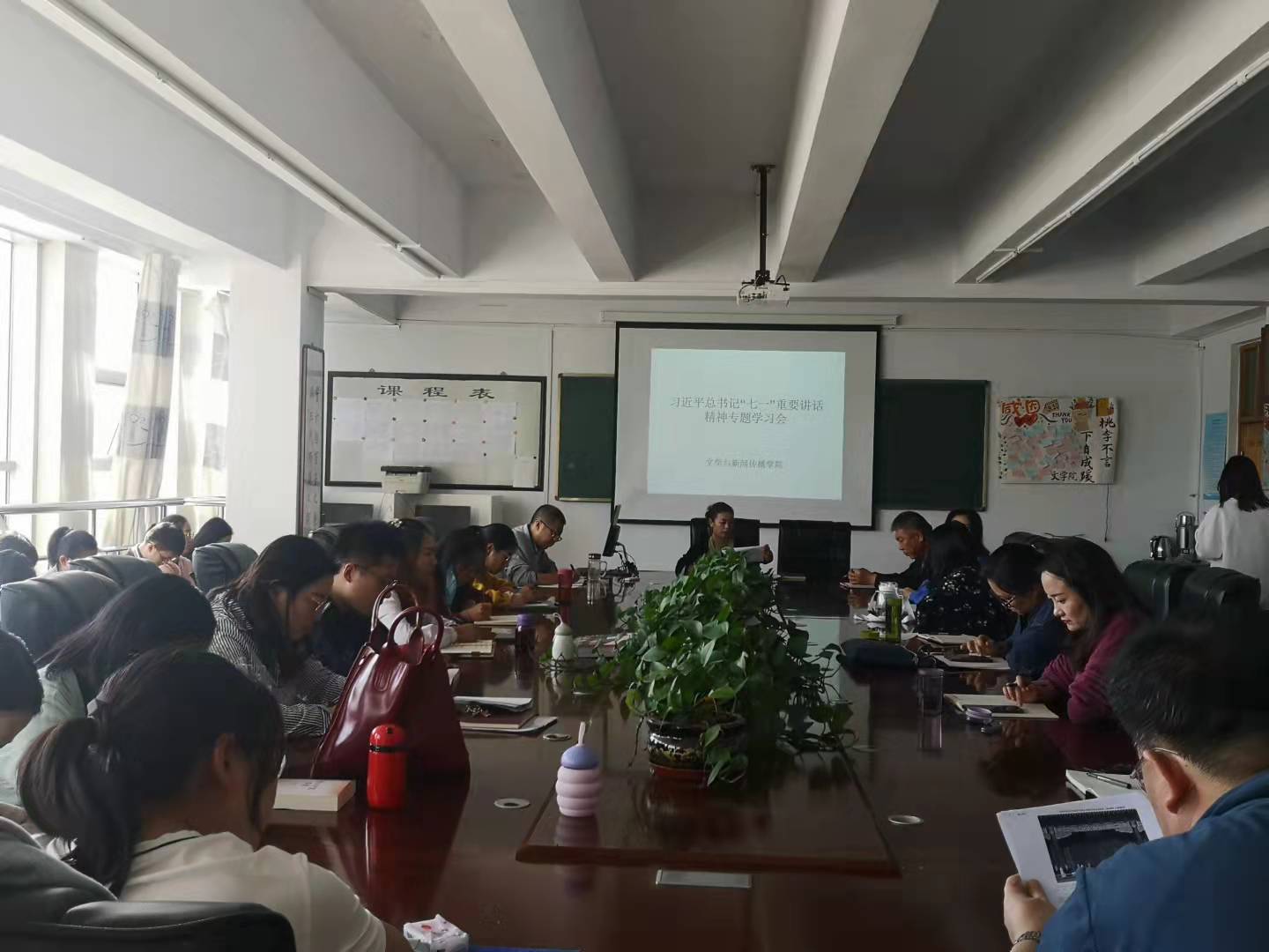 9月16日,文学与新闻传播学院党总支召开习近平总书记“七一”重要讲话精神专题学习会,会议由党总支书记张一弘主持,文学与传播学院全体党员参加了本次学习。