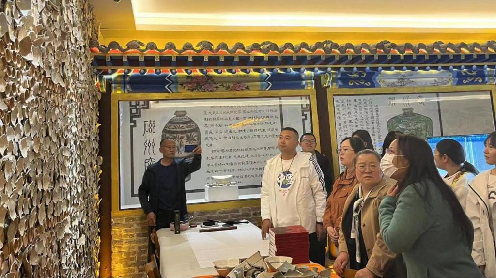 全体师生党员一起参观学校图书馆的元瓷博物馆,馆长李勇杰详细介绍了宋代的棋子、珐琅彩以及元朝时期的缸、石磨子等藏品。并介绍了如何整合瓷器、考古和研究资源,促进瓷器研究领域的信息共享与沟通,推动瓷器的数字化研究和展示。