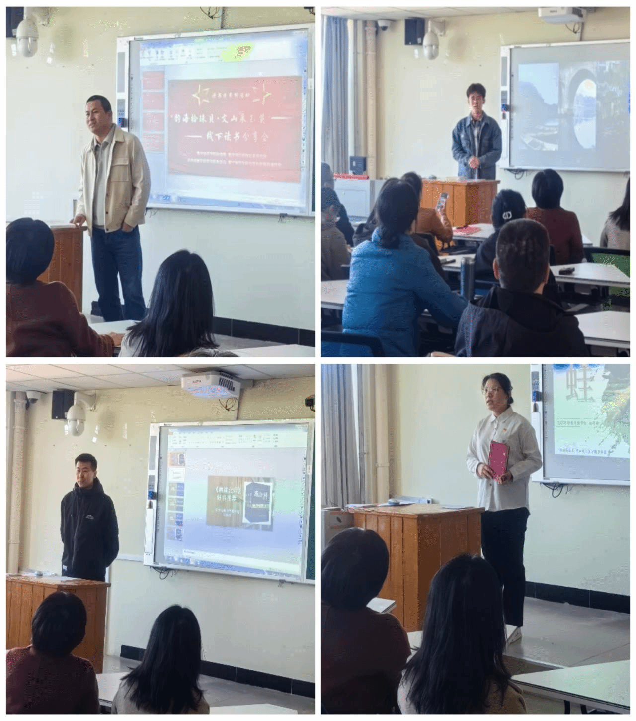 在分享环节,学生与教师代表依次带来了精彩纷呈的读书感悟。赵裕兴同学推荐沈从文先生的经典之作《边城》,在快节奏的现代社会中《边城》所展现的慢气息与纯天然之美,为大家提供了亲近自然、感受美好的契机。杨舒薇同学带来的《蛙》以新中国近60年农村生活史为背景,聚焦农村社会变迁,让大家在阅读中审视过去与当下,珍视生命的价值。刘镕珲分享的《南渡北归》里展现的知识分子坚守学术、克己奉公的精神,为当代人筑牢信念根基、传承奋斗精神提供借鉴。教师代表李安伟也分享了自己的读书心得感悟,读书是获得幸福的重要方式,可以获得心灵慰藉。