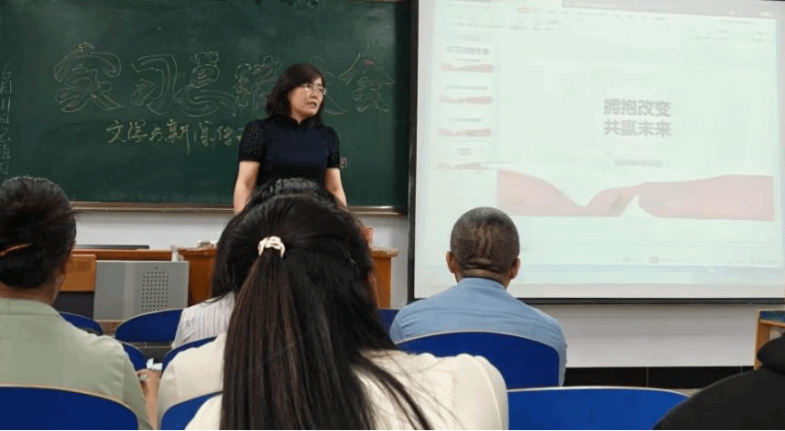 院长郭鹏就2021级教育实习工作首先发言。他强调,教育实习是汉语言文学与新闻学两大专业人才培养体系中不可或缺的“必修课”。通过实习,汉语言文学专业学生在教育岗位上展现出的教学实践能力和综合育人等能力,新闻学学生在媒体实践中迸发出的创新活力与进取风貌,均达到专业的毕业要求。同时也指出,实习过程中存在个别同学角色转换慢、实习态度不端正等问题,鼓励学生今后要不断努力突破自我、持续精进学业。