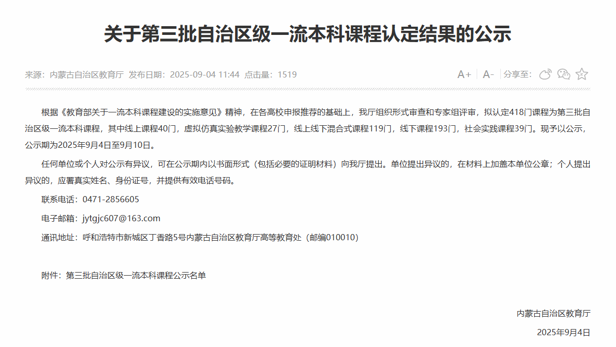 喜报|我院4门课程获批 第三批自治区级一流本科课程