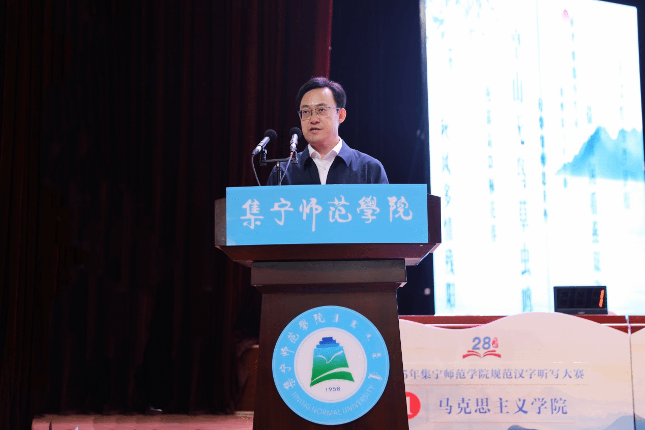 本次活动由校语委、国家语言文字推广基地(PP电子游戏平台网站)联合主办,文学与新闻传播学院、普通话水平培训测试工作站共同承办。PP电子游戏平台网站党委书记张宝成,党委副书记李景杰,党委委员、统战部部长赵向军,教务处处长姚玉阁,国家语言文字推广基地执行主任张一弘,党政办副主任杨晓宇及各二级学院相关负责人出席活动。规范汉字听写大赛邀请内蒙古语言学会会员、文学与新闻传播学院韩丽国副教授担任主考官;文学与新闻传播学院院长郭鹏教授、语言文字专家李秀林教授、中国硬笔书法协会会员、国家级普通话水平测试员郝青山老师担任评委。文学与新闻传播学院全体师生及泉山校区各学院师生代表共同观看比赛。