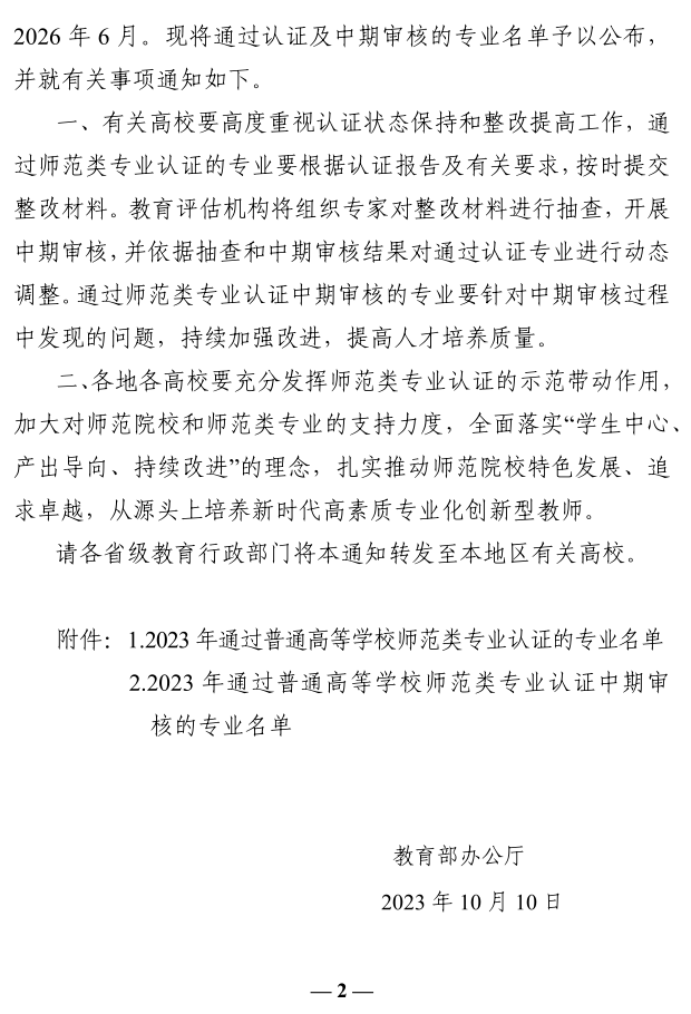 10月10日,教育部办公厅发布《教育部办公厅关于公布2023年通过普通高等学校师范类专业认证专业名单及中期审核专业名单的通知》(教师厅函[2023]24号),PP电子游戏官网文学与新闻传播学院汉语言文学专业通过认证,有效期6年,自2023年9月起,至2029年8月止。