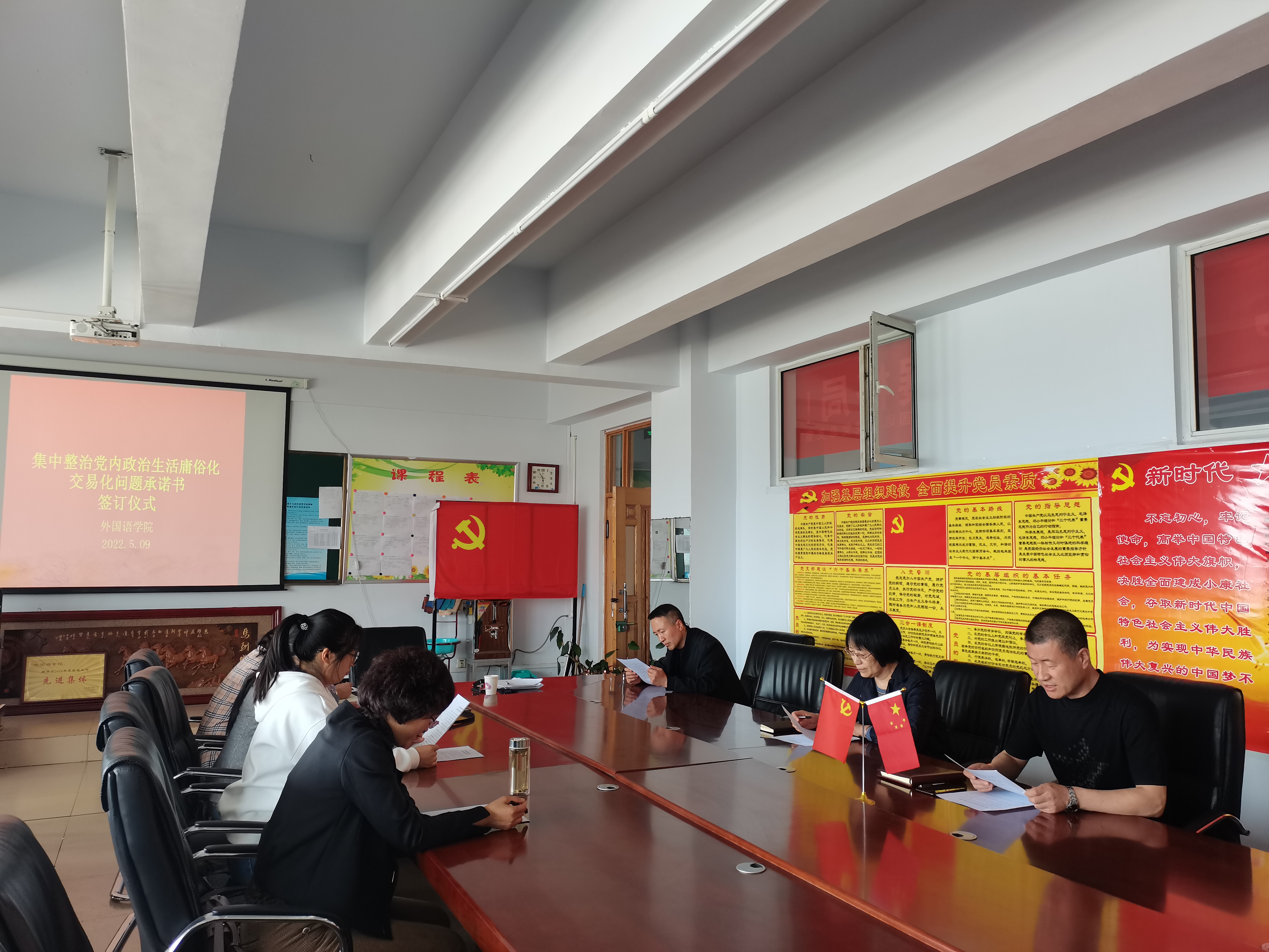 为进一步提高严肃党内政治生活的政治自觉、思想自觉和行动自觉,落实全面从严治党主体责任,5月9日,PP电子游戏平台网站外国语学院根据上级党委的部署要求,充分发挥关键少数的引领作用,以上率下,科级以上党员干部分别签订了《集中治理党内政治生活庸俗化交易化问题承诺书》,以书面形式承诺践诺“十一条严禁”规定,严明党的政治纪律,坚定党员的理想信念。这是我院全面加强党的建设的又一项重要内容。
