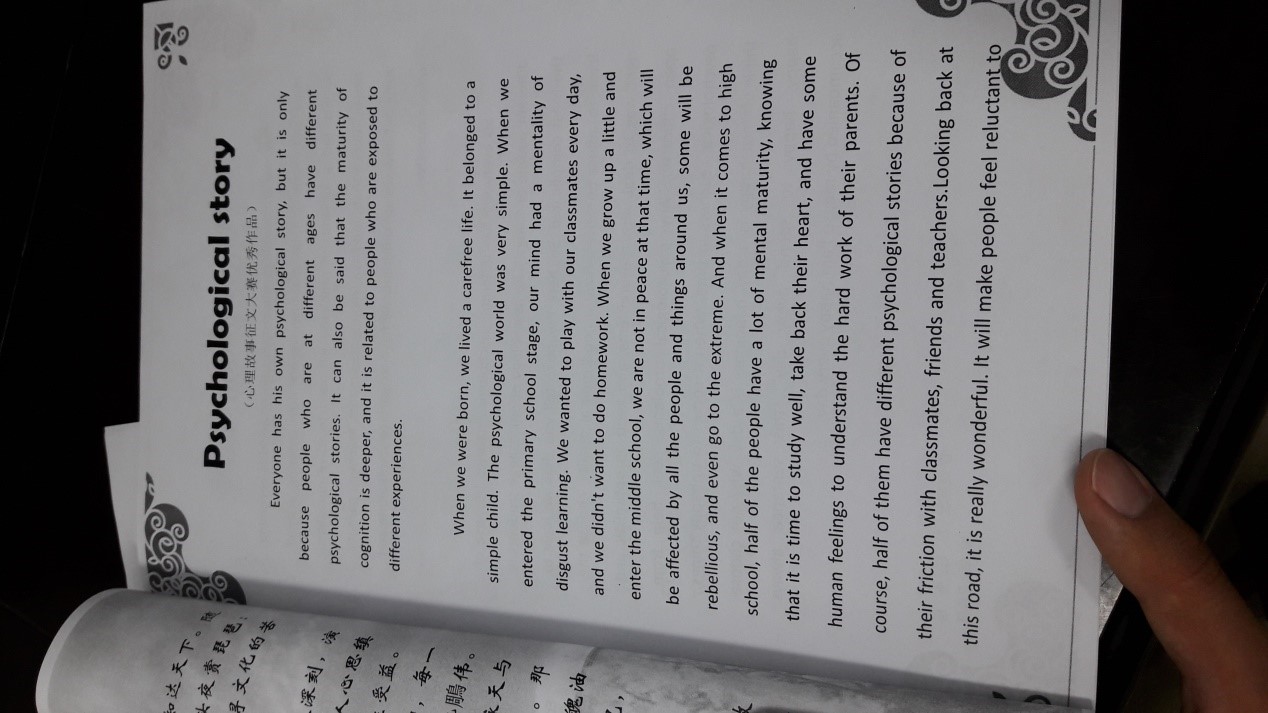 为了增强大学生心理健康意识,提高大学生心理健康水平,宣传心理健康知识。根据学校《关于开展第八届“大学生心理健康教育宣传月系列活动”的通知》要求,按照学校心理健康教育中心的总体安排,我院在2018年5月5日至5月15日,顺利开展了“外国语学院大学生心理故事征文大赛”。大赛由外国语学院学生会编辑部承办,针对我院英语专业、英语教育及商务英语专业的在校生,参赛选手在规定的时间以个人名义完成征文稿,并交由了学生会编辑部进行参评,作品内容都以心理健康故事为主,重点突出,详略得当。经过评审,一等奖由17级英语教育二班曹乐获得,二等奖获得者为17级英语一班黄新舒,17级英语一班战智慧。获奖作品刊登在外国语学院院报心理健康专栏。
