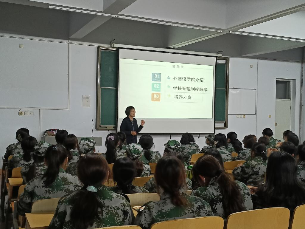 活动伊始,闫晓云介绍了学校历史,校规校纪,本科教学管理制度。然后向新生介绍了外国语学院教师队伍、学生管理制度、课程安排、培养方向以及如何正确对待专业学习等内容,让新生们对学校和所在专业有了更深入的了解。