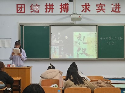 为传承中华民族的优良传统,弘扬文明礼仪,培养学生树立“讲文明、重礼仪”的文明意识,外国语学院各班在十一月上旬有序开展了以“弘扬礼仪风尚,争做文明先锋”为主题的班会活动。在班会中,同学们分享有相关主题的名人故事和个人经历,收获颇丰。此次班会引导学生培养了文明得体的行为习惯,树立了文明校园新风,营造了浓厚的校园育人氛围。