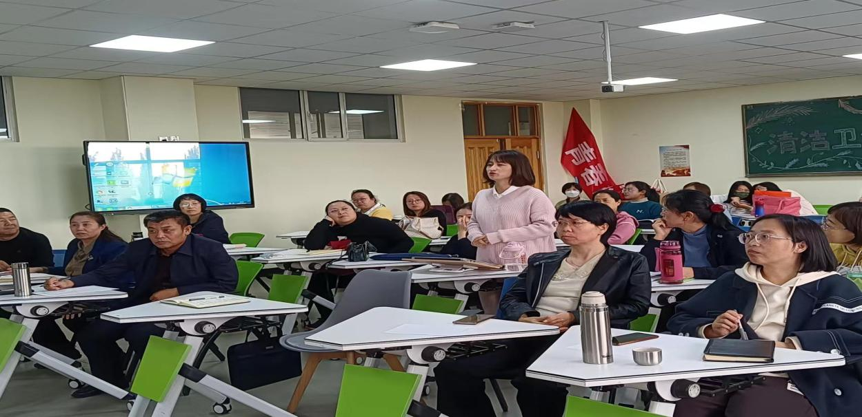 为了贯彻落实立德树人根本任务,进一步提高外国语学院教师队伍的专业素养和数字教学技能,充分发挥骨干教师的示范和引领作用,使我院深入开展学习贯彻习近平新时代中国特色社会主义思想主题教育走深走实,2023年10月12日下午我院“数字赋能”教学示范课在主教楼519智慧教室成功举行。校党委委员、副校长李景杰 、教务处副处长胡文婧,外国语学院副院长鲁俊彪,刘至美以及全体专业教师参加了此次示范课活动。
