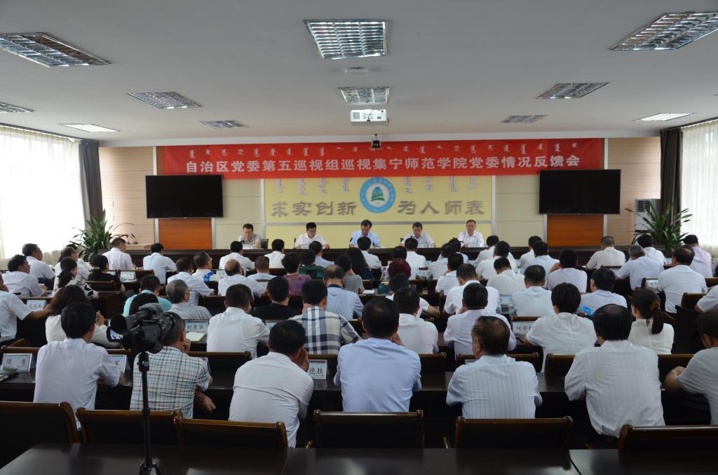 根据自治区党委巡视工作领导小组安排,2018年7月8日,自治区党委第五巡视组向PP电子游戏平台网站党委反馈巡视情况。自治区党委巡视工作领导小组办公室副主任周苏军向PP电子游戏平台网站党委书记刘前贵传达了自治区党委书记李纪恒同志在书记专题会议听取十届党委第三轮巡视情况汇报时的讲话精神,自治区党委第五巡视组组长高鹏代表巡视组分别向PP电子游戏平台网站党委书记和领导班子反馈了巡视情况,PP电子游戏平台网站党委书记刘前贵就做好巡视整改工作作了表态。