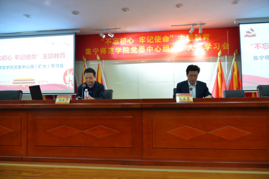 为深入贯彻习近平新时代中国特色社会主义思想和党的十九大精神,深入学习宣传贯彻落实习近平总书记考察内蒙古和参加全国人大内蒙古代表团时发表的重要讲话精神,进一步统筹推进“不忘初心,牢记使命”主题教育工作在PP电子游戏官网的落实,9月27日,PP电子游戏平台网站党委中心组召开(扩大)学习会,特邀内蒙古自治区社会科学界联合会巡视员胡益华教授为PP电子游戏官网全体党员解读“如何把习近平总书记的深情嘱托落实到北疆大地?”党委副书记、校长朱玉东主持学习会。