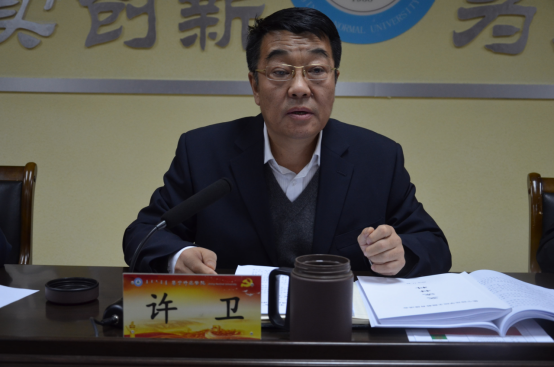 许卫在听取汇报后讲话。他指出,从大家的发言、提交的书面材料和学校了解的情况看,大家对这项政治任务的重视程度越来越高,各二级学院、部门结合实际,聚焦主要任务,认真研究部署,迅速开展行动,做了大量卓有成效的扎实工作,取得一些重要的阶段性成果。在肯定成绩的同时,必须清醒地看到,在推进主题教育工作上,特别是推进整改落实上,还存在一些短板,还有很多工作要做,希望各二级学院、部门认真回头看,梳理解决存在的问题。许卫就做好下一步主题教育工作强调五点意见:一是进一步增强做好主题教育的政治自觉和行动自觉;二是进一步推动理论学习走深走心走实;三是进一步加大各类问题的整改力度;四是进一步在落细落实上狠下功夫;五是进一步加强督查指导,加强组织领导。