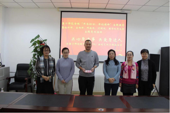 集宁师院参加主题党日活动的各党支部代表向刘艺同学进行了捐款,表达了师院党员对刘艺同学的关爱之情。附中工会主席王建代表刘艺同学接受了捐款。