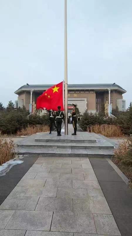 7:30分,在雄壮的国歌声中,五星红旗在校园内冉冉升起,神圣、庄严的氛围感染着在场的每一位师生,全体人员肃穆敬礼,深怀对祖国无限的热爱和崇高的敬意。