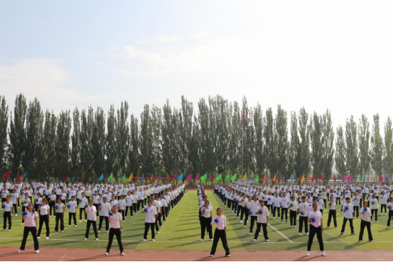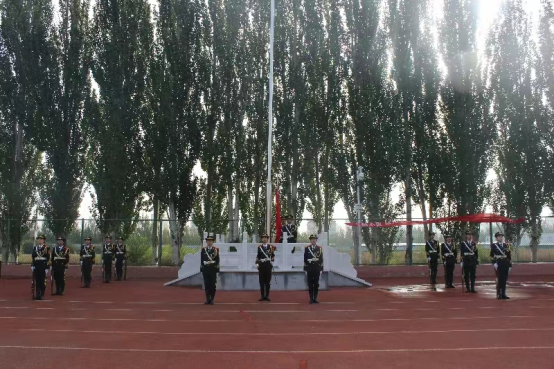 鲜艳的五星红旗冉冉升起,在雄壮嘹亮的国歌声中,全体师生庄严肃穆,面向五星红旗,致以最崇高的敬意。
