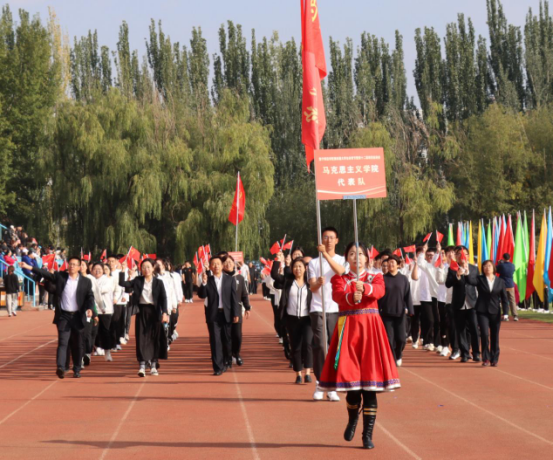 各学院代表队迈着矫捷的步伐入场,他们精神抖擞、神采飞扬,整齐划一的步伐、高亢嘹亮的口号、精彩纷呈的驻停表演充分展现了朝气蓬勃的青春活力和昂扬向上的精神风貌。