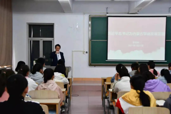5月27日上午,PP电子游戏平台网站党委副书记、校长李树林为2020级数学与应用数学专业1班、2班讲授《铸牢中华民族共同体意识》课程第八讲“习近平总书记为内蒙古擘画发展蓝图”的内容,将习近平总书记从十八大以来对内蒙古的关怀和重要指示批示精神为同学们进行了系统梳理和精彩讲述。
