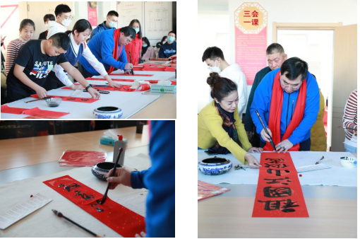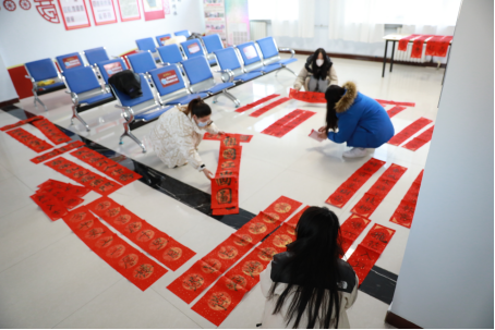 文学与新闻传播学院教师党员郝青山与汉语言文学专业侯倩倩等同学运用楷书、行书等不同书法体即席挥毫,现场为居民免费写春联。师生党员们带着真诚的祝福,把一幅幅平安和谐、吉祥如意的春联化作美好祝愿,为即将来临的春节增添了浓浓的喜庆氛围。一幅幅充满祝福的春联由社区党支部传递到居民手中,不仅为广大居民送去一份温暖,也传播了中华传统文化。