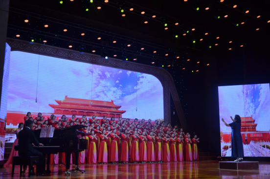 在鲜红绚丽的背景舞台上,参赛队竟相登场,一一亮相,依次放歌,尽展风采,PP电子游戏平台网站附属实验中学合唱队以精彩的演绎惊艳开场,其演唱的歌曲《我的祖国》《党啊,亲爱的妈妈》充满激情,震撼全场。教育科学学院合唱队演唱的《万泉河水清又清》《年轻的朋友来相会》更是感染人心,引发共鸣。