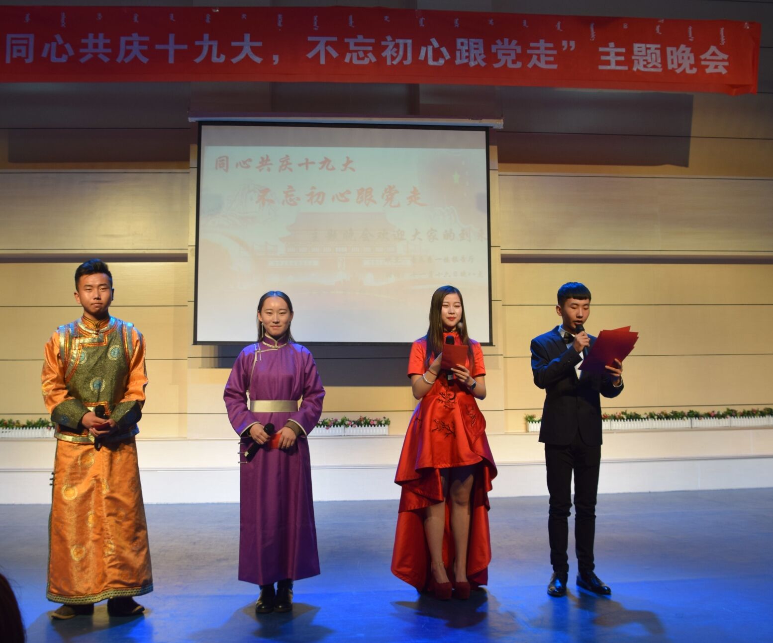 为促进学生对十九大精神的学习宣传,学生工作部党总支于11月16日晚在白海校区音乐系报告厅举办了“同心共庆十九大不忘初心跟党走”宣传十九大主题晚会。