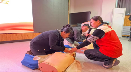 在模拟实训环节,参训人员分组使用专业教具进行了反复演练,讲师团队全程“手把手”指导纠正动作,确保每位学员掌握标准急救流程。