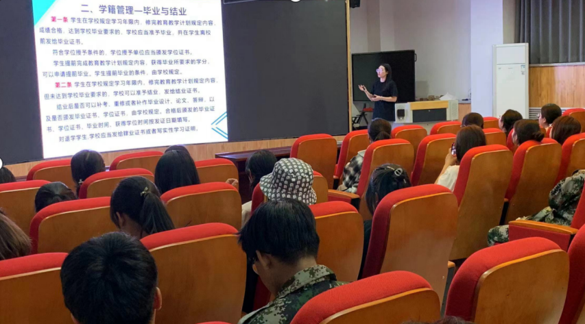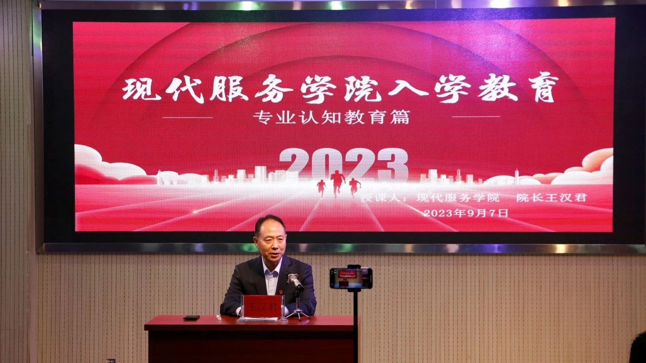 现代服务学院党总支书记李荣利为新生做了铸牢中华民族共同体意识专题讲座。院长王汉君结合专业特色和本科教学工作,实践技能培养、职业规划、就业指导、如何融入大学生活、做好学业规划进行了讲述。党总支副书记毛慧围绕日常行为养成、人身安全、校园网贷、网络安全等方面,通过案例介绍和专业知识相结合的方式,引导大家提高安全防范意识、法治意识和自我保护意识。