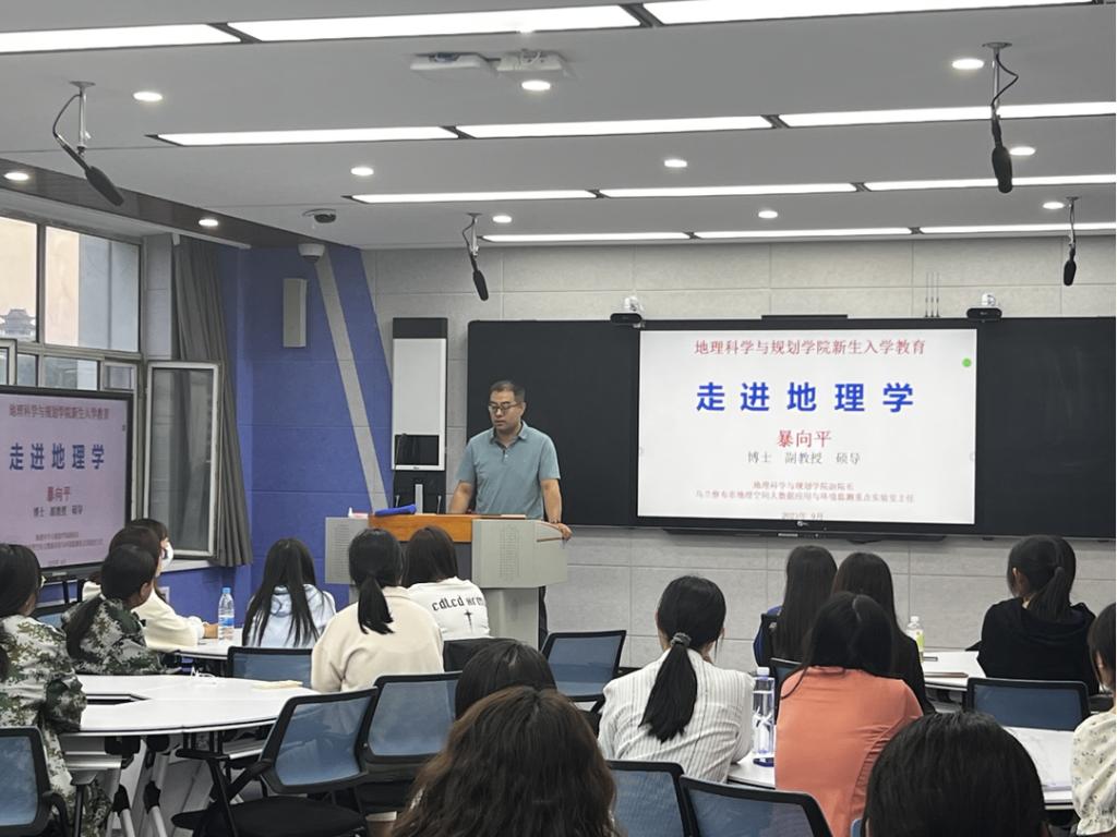 地理科学与规划学院副院长暴向平围绕地理科学专业成绩考核、就业前景、留降级、考研方向等内容进行深入讲解,重点介绍了人才培养方案的设计思路、培养目标、课程设置等内容。专职辅导员李瑞英作了学生事务管理入学教育讲座。