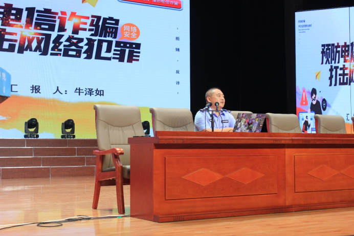 外国语学院、文学与新闻传播学院、生命科学与技术学院、化学与化工学院联合邀请乌兰察布市打击治理电信网络新型违法犯罪中心牛泽如警官做了题为“预防电信诈骗 打击网络犯罪”安全教育专题讲座。讲座有效地提高了同学们的防诈反诈意识,增强安全意识与自我防范能力,提升学生综合素质,并对网络电信诈骗有了更深入的认识和明确的应对方法。
