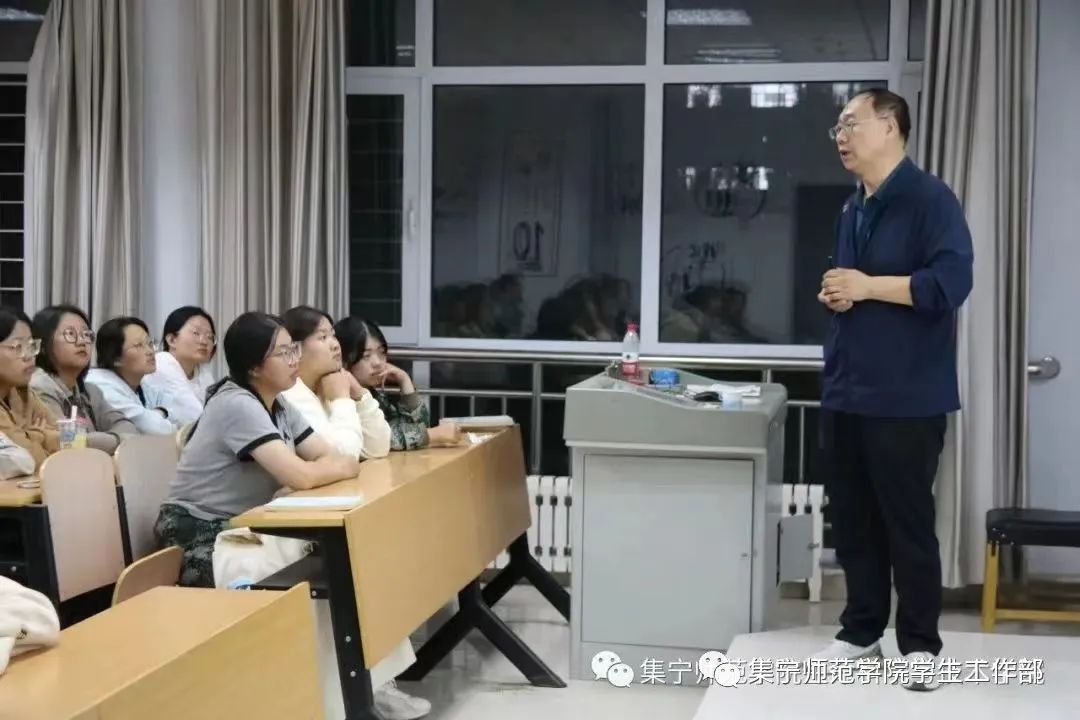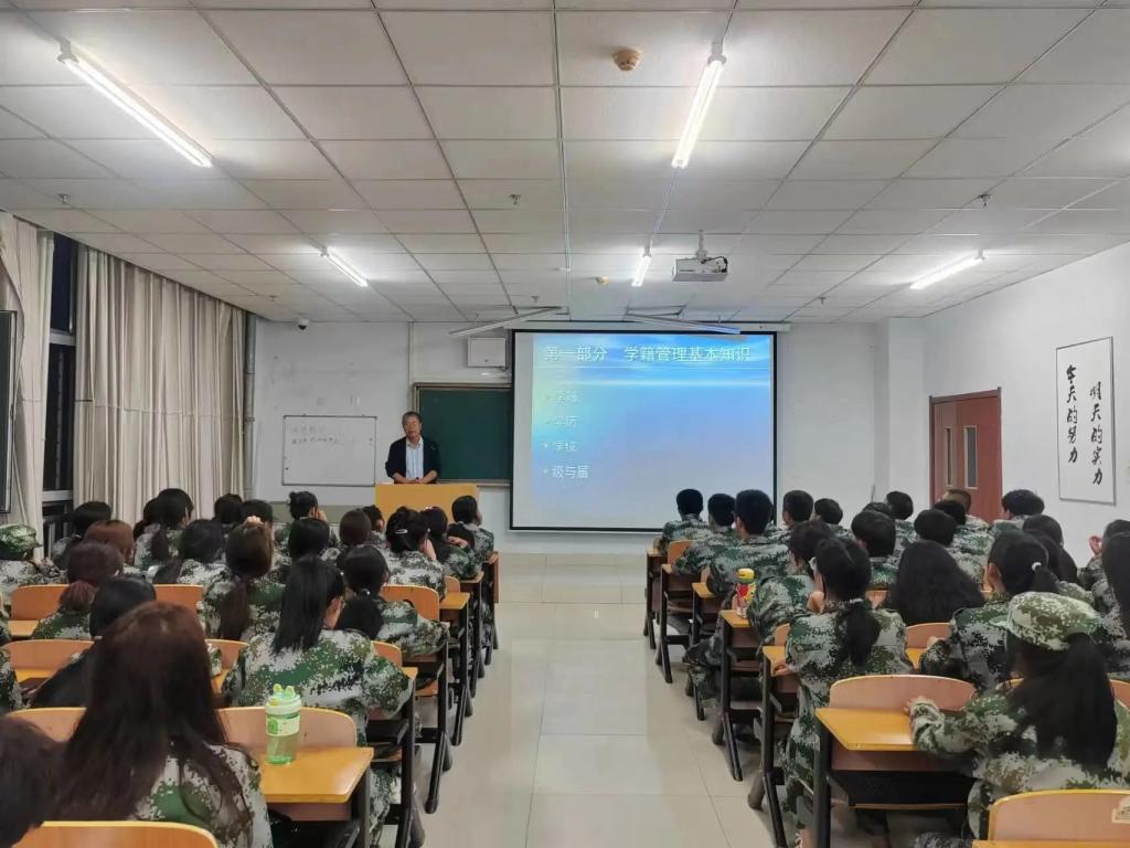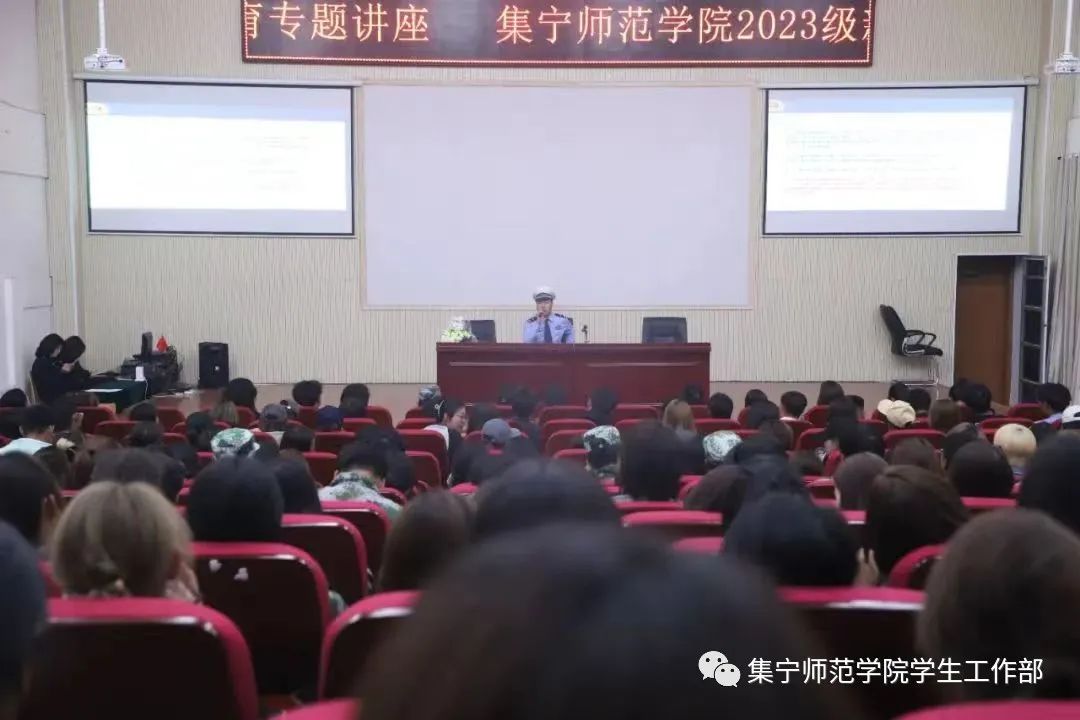 教育科学学院党总支副书记韩超为2023级新生进行校规校纪教育,详细讲解了学生纪律处分办法。学工办主任李叶从思想品德、日常行为规范、学习考试、网络安全等方面进行日常行为规范教育。学生支部书记潘燕峰从入党基本条件、入党的基本程序方面讲解,使新生明确大学生入党的基本要求。邀请乌兰察布市白海子镇民警贾峰,陈晓波,李旭艳就校内安全,网络安全,社会安全等展开了安全与法治教育课,普及安全常识。