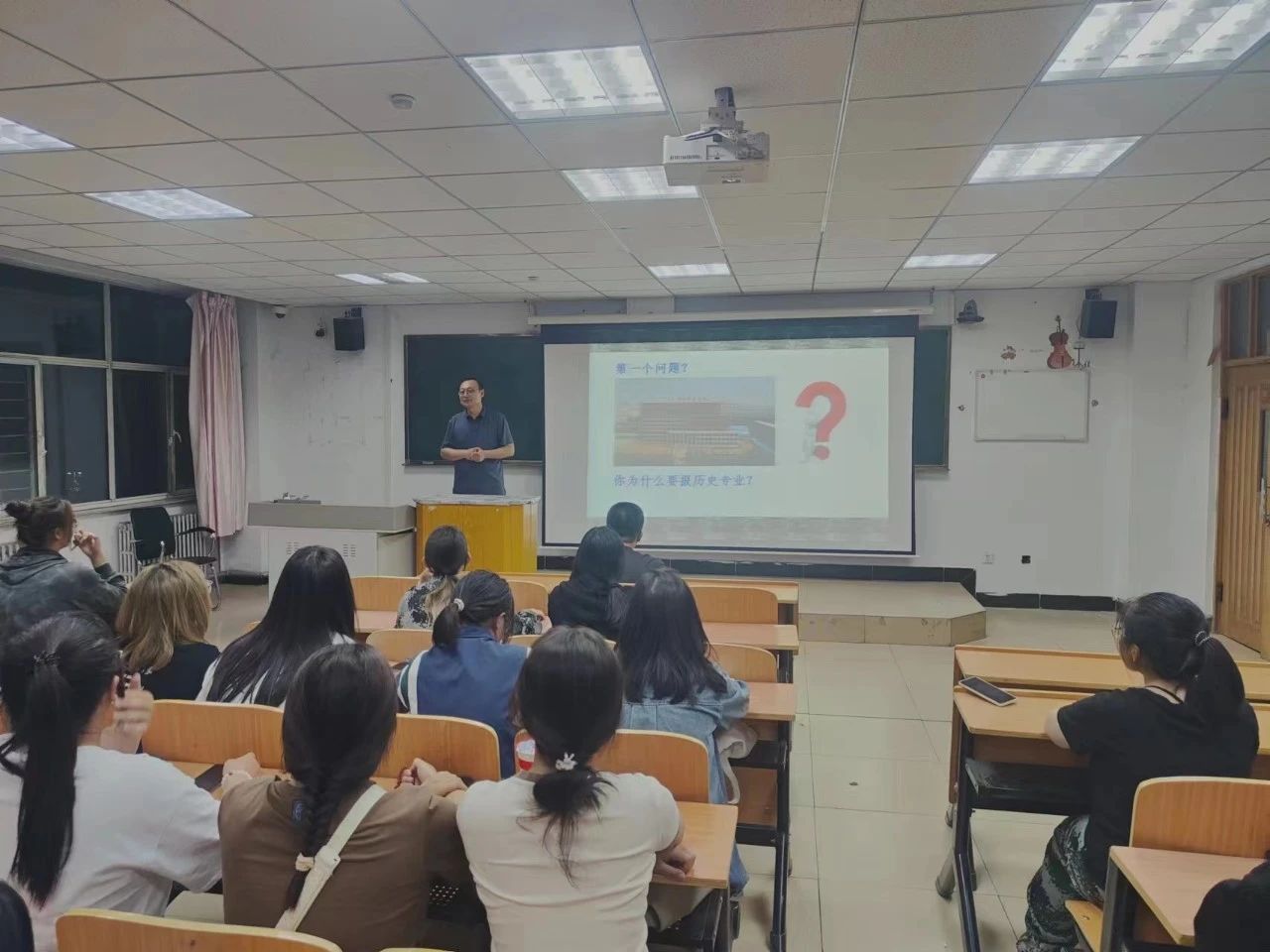历史文化学院院长张军详细介绍了PP电子游戏平台网站的发展历程以及历史文化学院的前身、发展过程、历届教师、毕业生等,对历史学专业、文物与博物馆学专业进行了详细的介绍。历史文化学院联合马克思主义学院、地理与科学规划学院举办“践行守望相助理念 铸牢中华民族共同体意识”新生入学教育,讲座由马克思主义学院郭永兴老师主讲。