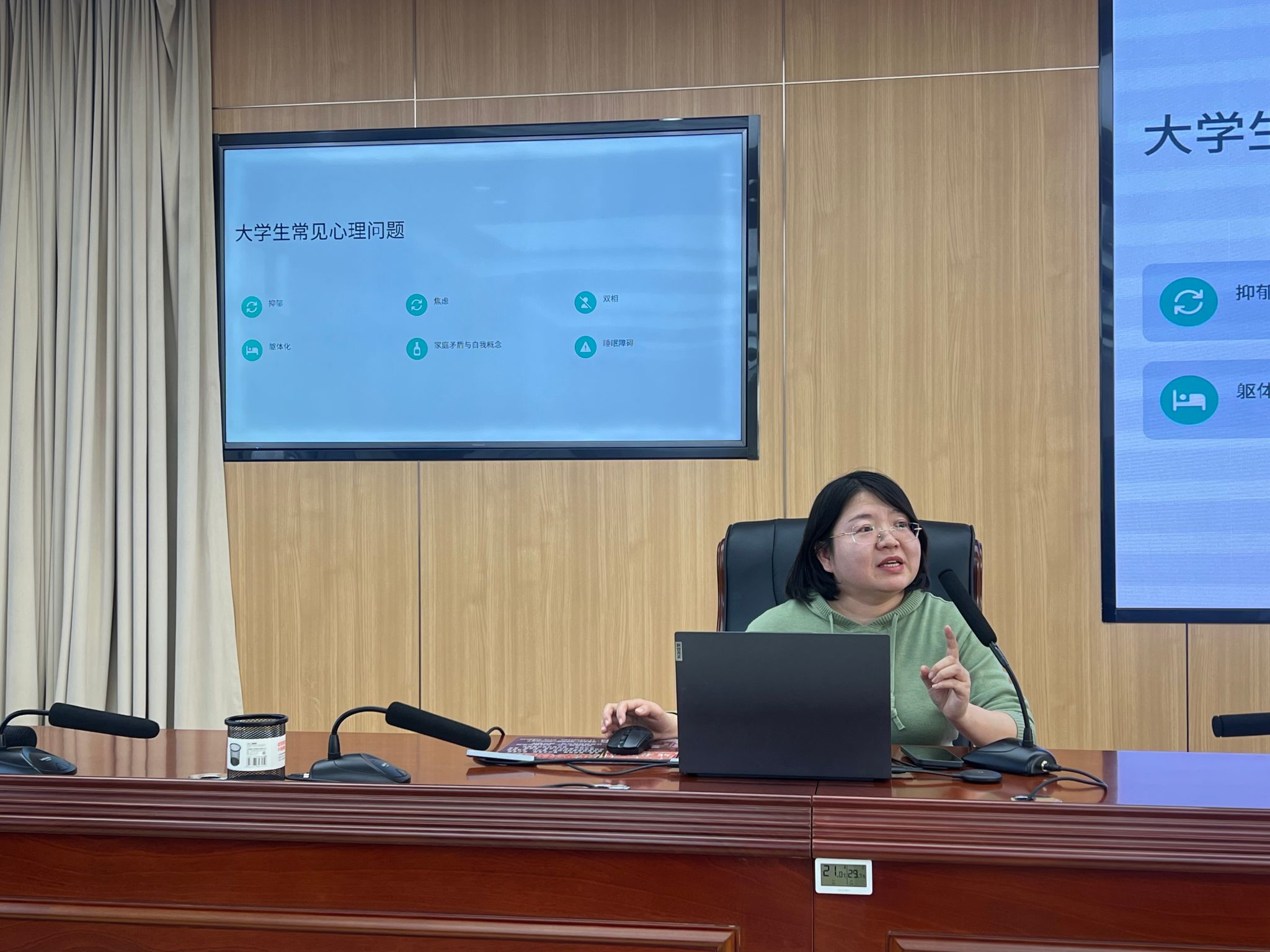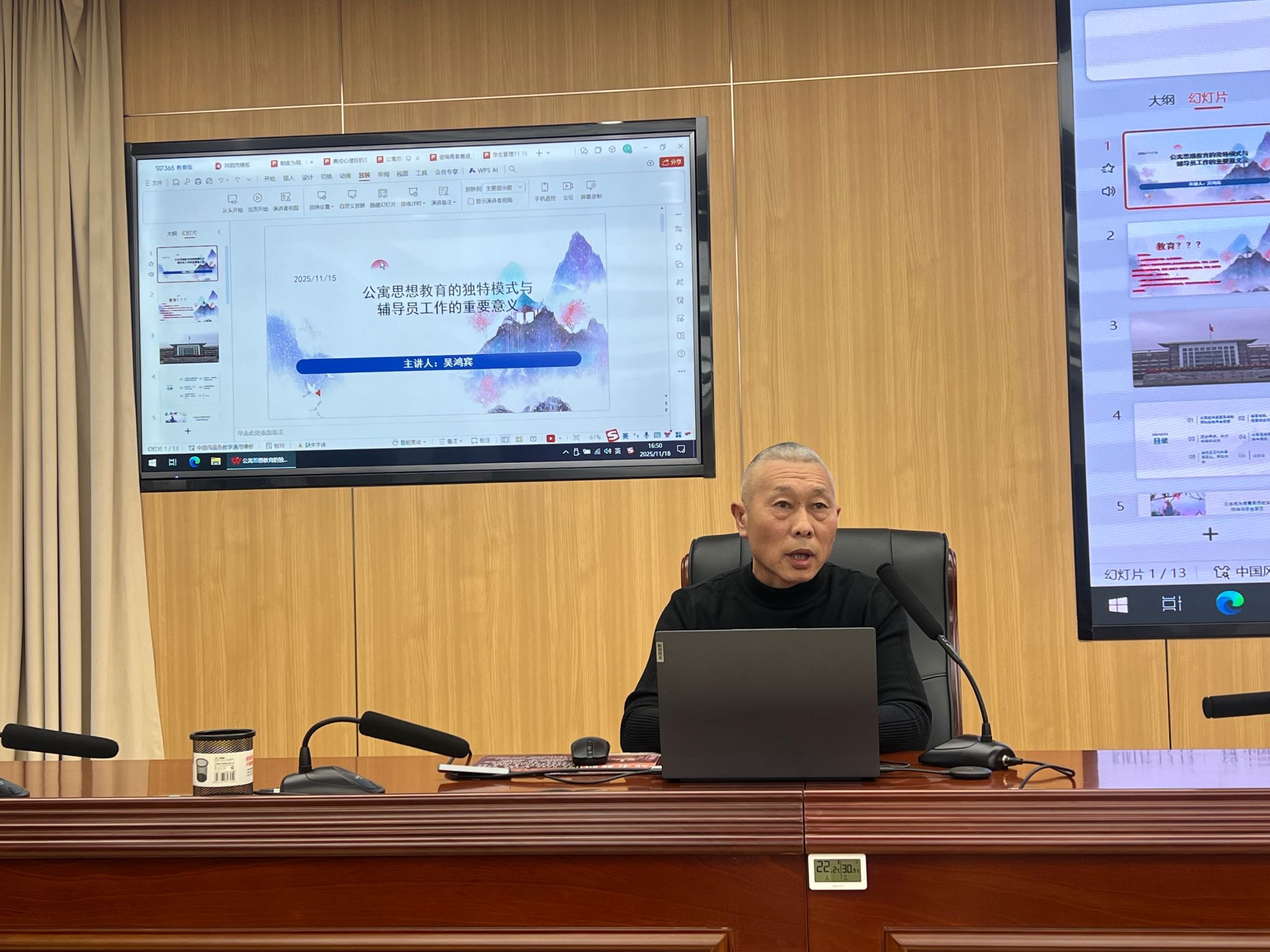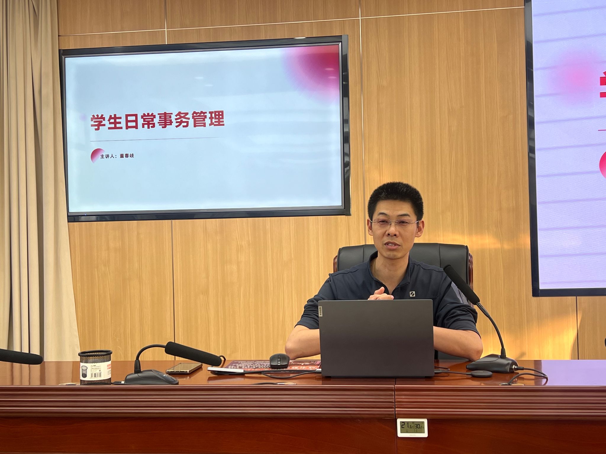 钟华老师以“高校学生心理危机的识别与应对”为主题展开讲解,系统介绍了大学生常见心理问题类型、科学评估方法及风险筛查流程,重点拆解了辅导员谈心谈话技巧要点,为提升心理危机早期发现和及时干预提供了实操指导,助力筑牢校园心理健康防线;董春岐老师围绕学生日常管理核心事项进行政策解读,内容涵盖考勤管理、信息采集、请销假制度等基础工作规范,明确评奖评优与违纪处分的流程标准,并就国防教育与征兵入伍等资助政策进行专项说明;吴鸿宾老师聚焦公寓育人阵地建设,阐述了公寓思想教育的独特模式与核心理念,强调要充分发挥公寓在学风建设、习惯养成、人际关系引导中的重要作用,构建“全员、全方位、全过程”的育人格局。