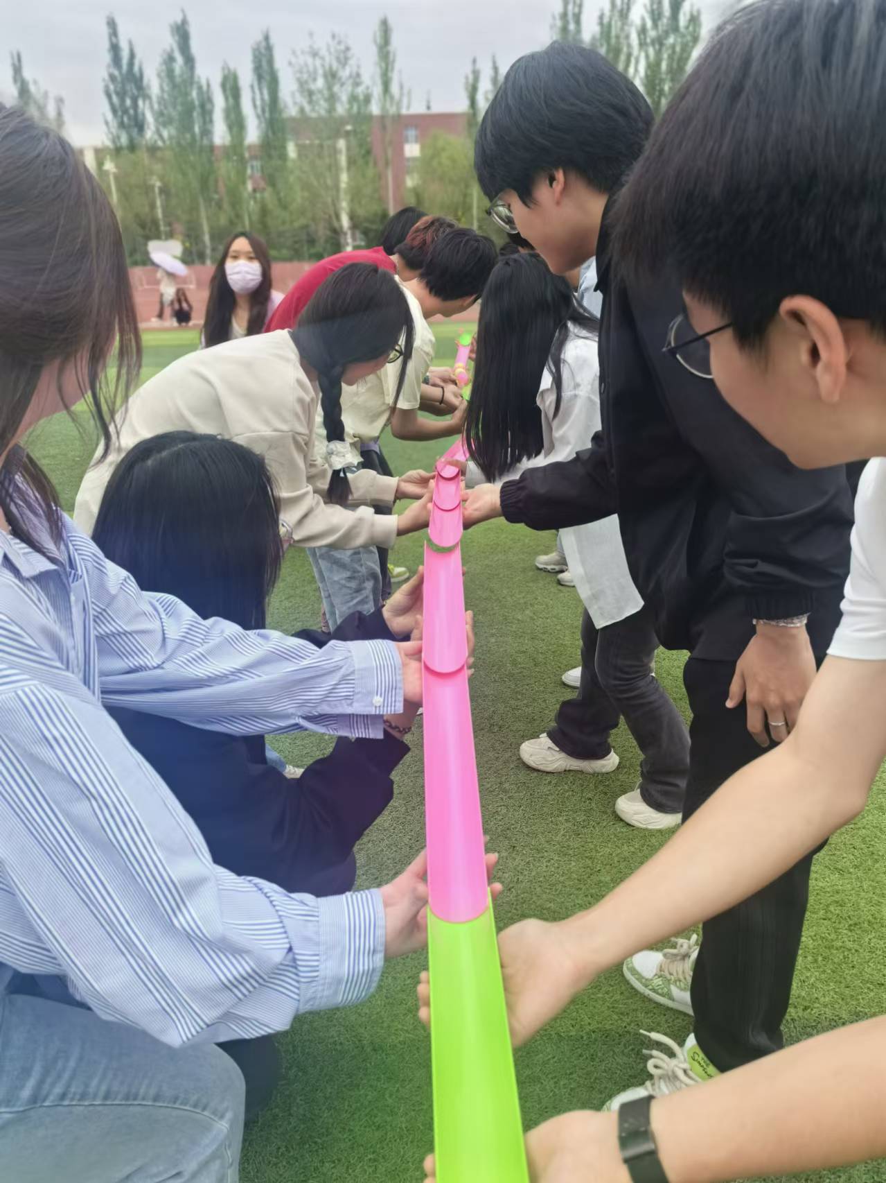 为响应教育部全面落实五育并举促进心理健康理念,丰富校园文化,强化学生心理素质,5月22日和24日,PP电子游戏官网在操场举办了“以体强心 青春同行”户外心理素质拓展活动。共三百余名同学参加此次活动。