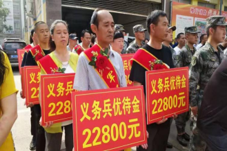(直招士兵不发放)按照每年不低于当地上年度农牧民人均收入的1.5倍发放,我县2年优待金约36000元。到西藏、新疆等高原艰苦地区服役,不低于当地义务兵优待金的3倍。荣获-等功以上、二等功、三等功的分别增发50%、30%、 15%。