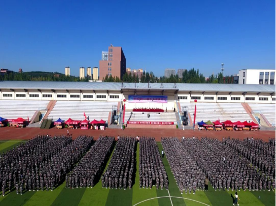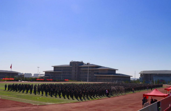 武警乌兰察布支队参谋长郭进忠作讲话,他希望同学们认清军训的意义,增强国防意识;主动迎接挑战,确保军训质量;严守纪律规矩,全程安全顺利。预祝同学们训有所成、学有所获,同时预祝本次军训圆满成功!