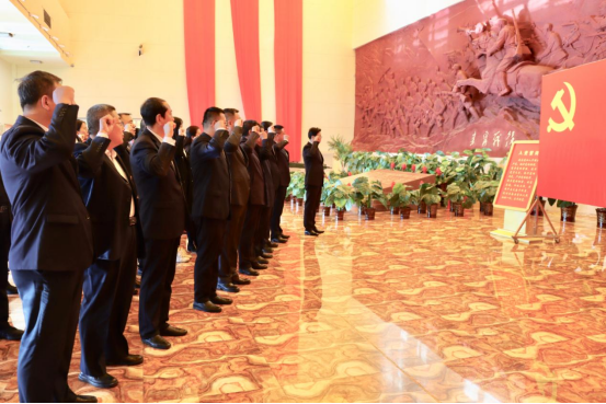 参观前,全体党员来到宣誓大厅,面对鲜艳的中国共产党党旗,由朱玉东领誓,所有人高举右拳,庄严宣誓:“我志愿加入中国共产党……”铿锵的誓言在纪念馆上空激昂回响。展览分为7部分19个单元及8个复原场景,展出各类珍贵文物、照片、复制品和艺术作品1200余件,生动再现了集宁战役完整过程。步入展厅,大家沿着展陈路线,认真听取讲解,详细了解有关情况,回望当年发生在集宁这片热土上的重要战役,深刻感悟共产党人的初心使命。