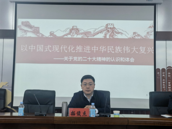 拓俊杰以党的二十大报告为切入点,从主题教育的总要求和根本任务出发,结合实际,围绕深刻认识党的二十大报告重要指示的战略意义,深刻把握中国式现代化重要思想的精髓要义,深入学习党的二十大报告中关于中国式现代化推进中华民族伟大复兴的重要论述,分别从开辟了马克思主义中国化新境界,新时代新阶段中国共产党的中心任务,在团结奋斗中实现全体人民共同富裕三个部分进行了深入浅出的解析。此次党课主题鲜明,内容丰富,语言精练,极富感染力,既有理论高度,又有实践深度,使大家受到了一次深刻的精神洗礼。