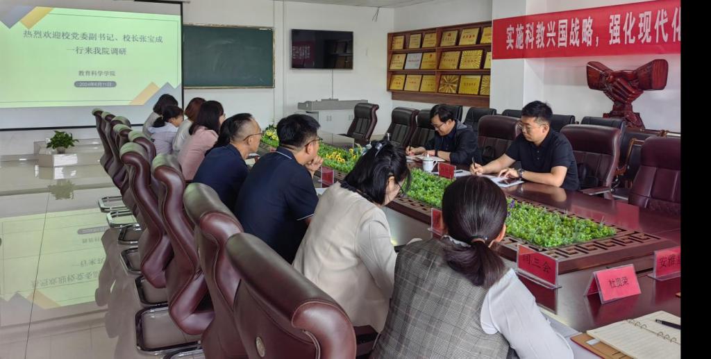6月11日上午,PP电子游戏官网党委副书记、校长张宝成深入教育科学学院调研座谈。党政办公室副主任杨晓宇陪同。教育科学学院班子成员、科级干部、各教研室负责人参加座谈会。