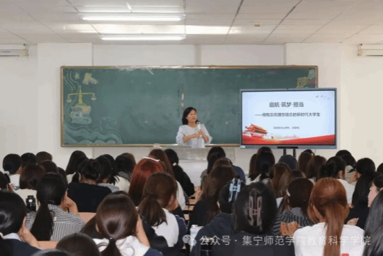 为深入贯彻落实立德树人根本任务,切实加强对2025级新生的思想政治引领。9月11日,教育科学学院邀请马克思主义学院副教授张爱梅为新生开展题为"启航·筑梦·担当—做有崇高理想信念的新时代大学生"的专题讲座,着力引导新生坚定理想信念、明确使命责任,努力成长为有理想、敢担当、能吃苦、肯奋斗的新时代好青年。