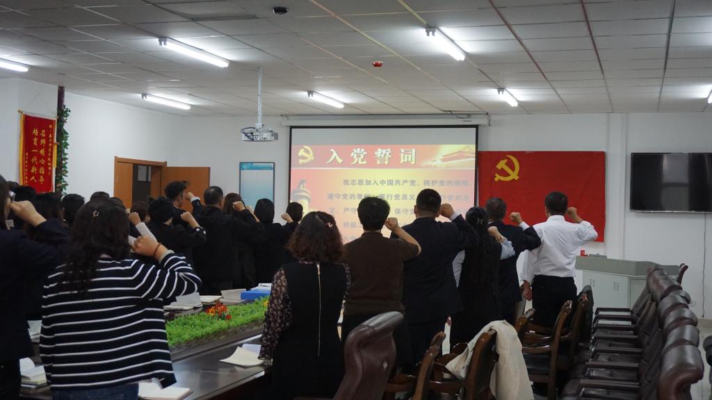 教育科学学院教工党支部书记孟庆艳带领全体师生党员重温入党誓词。